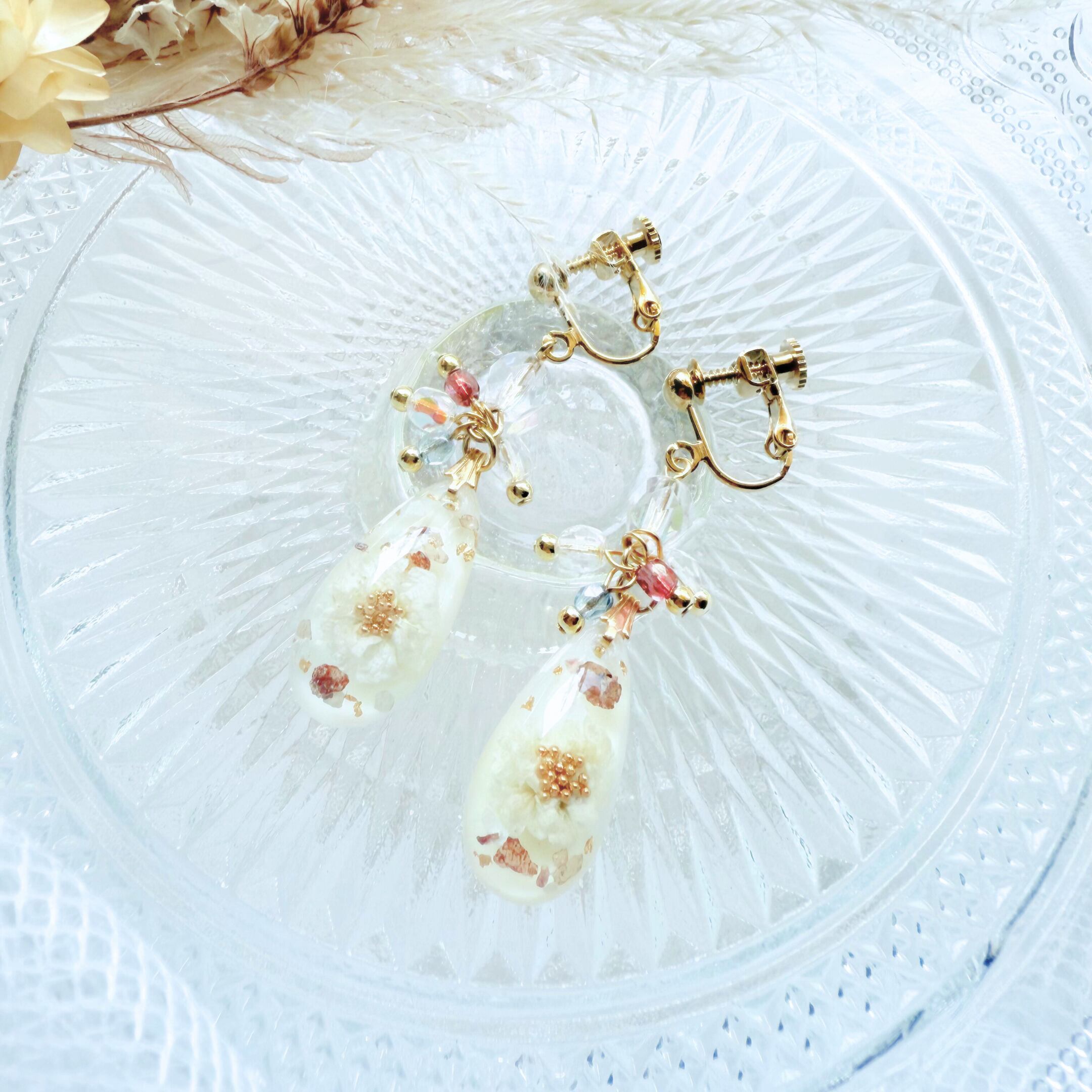 ・素材 ・・・ レジン(樹脂)、金メッキ、金箔、アクリルビーズ、ドライフラワー