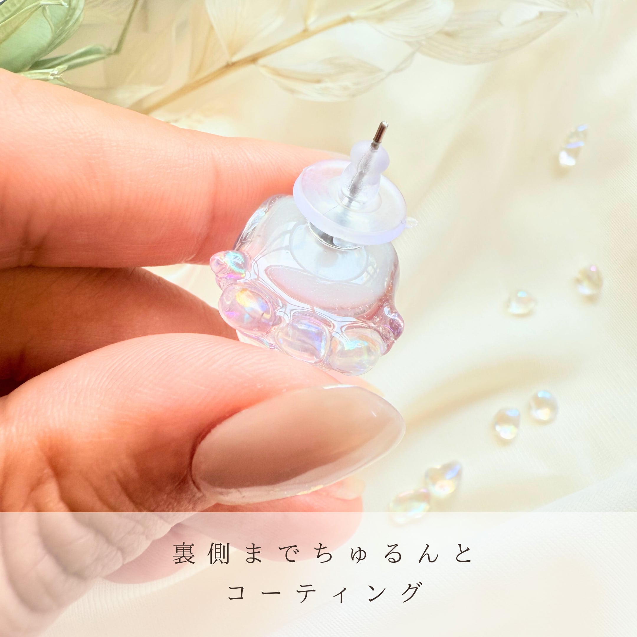 そう願って、当店ではピアスイヤリングの肌に触れる部分に金属アレルギー予防などを目的としたフッ素コーティングを施してお届けしています。
