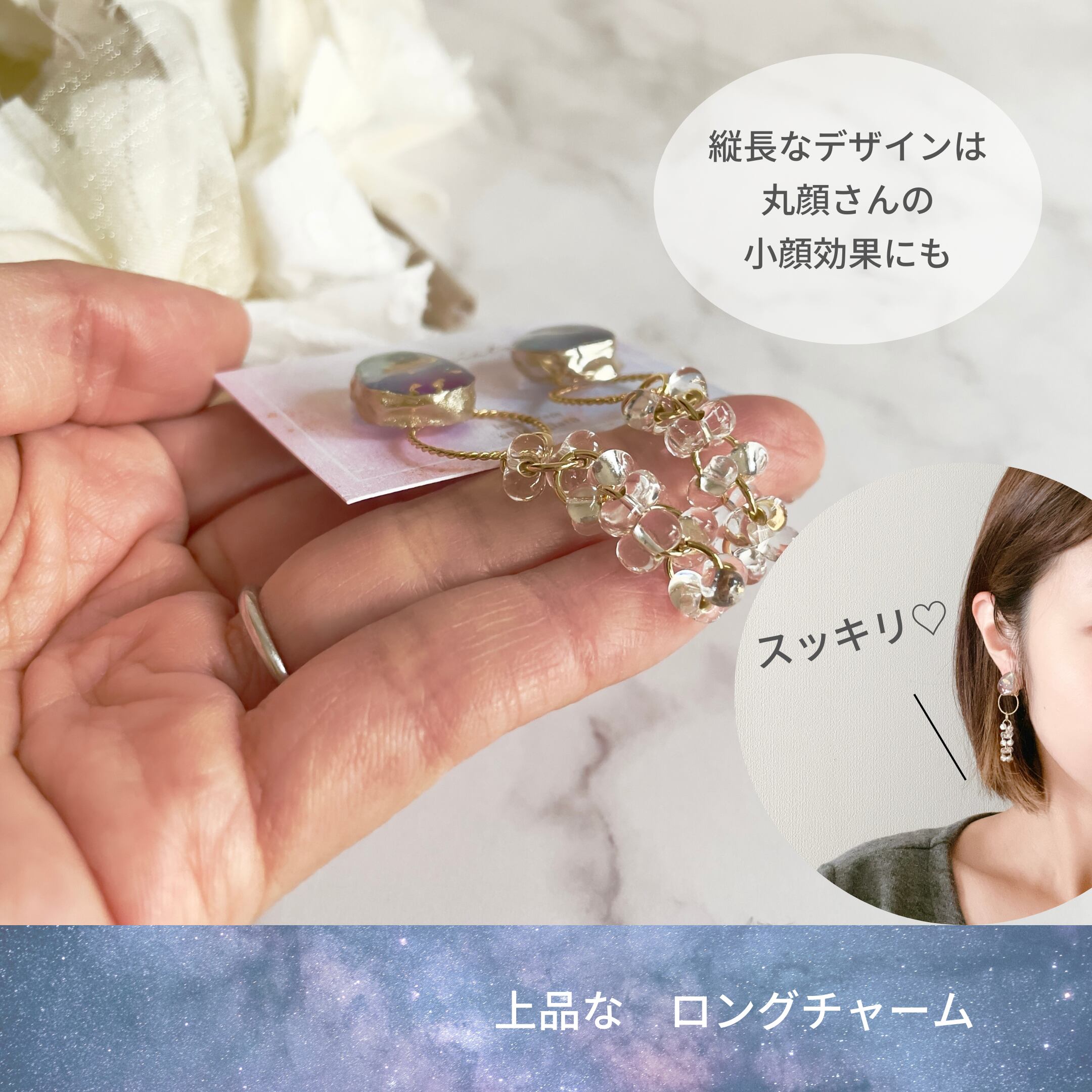 揺れるデザインのイヤーアクセサリーは身に付けていることを実感できるので、いつもよりちょっとおしゃれをしている気持ちになれて、自信が持てると思いますよ *⃝
