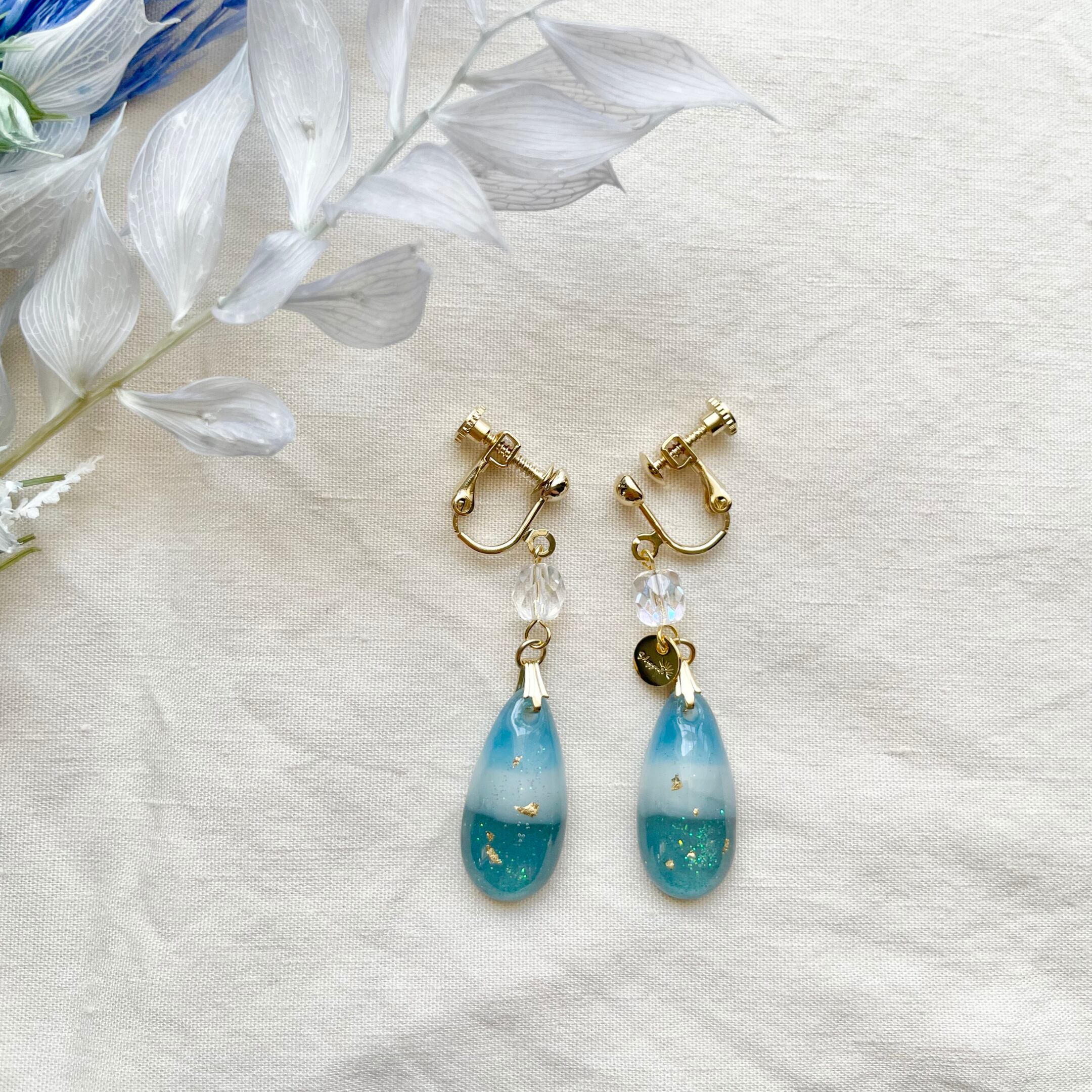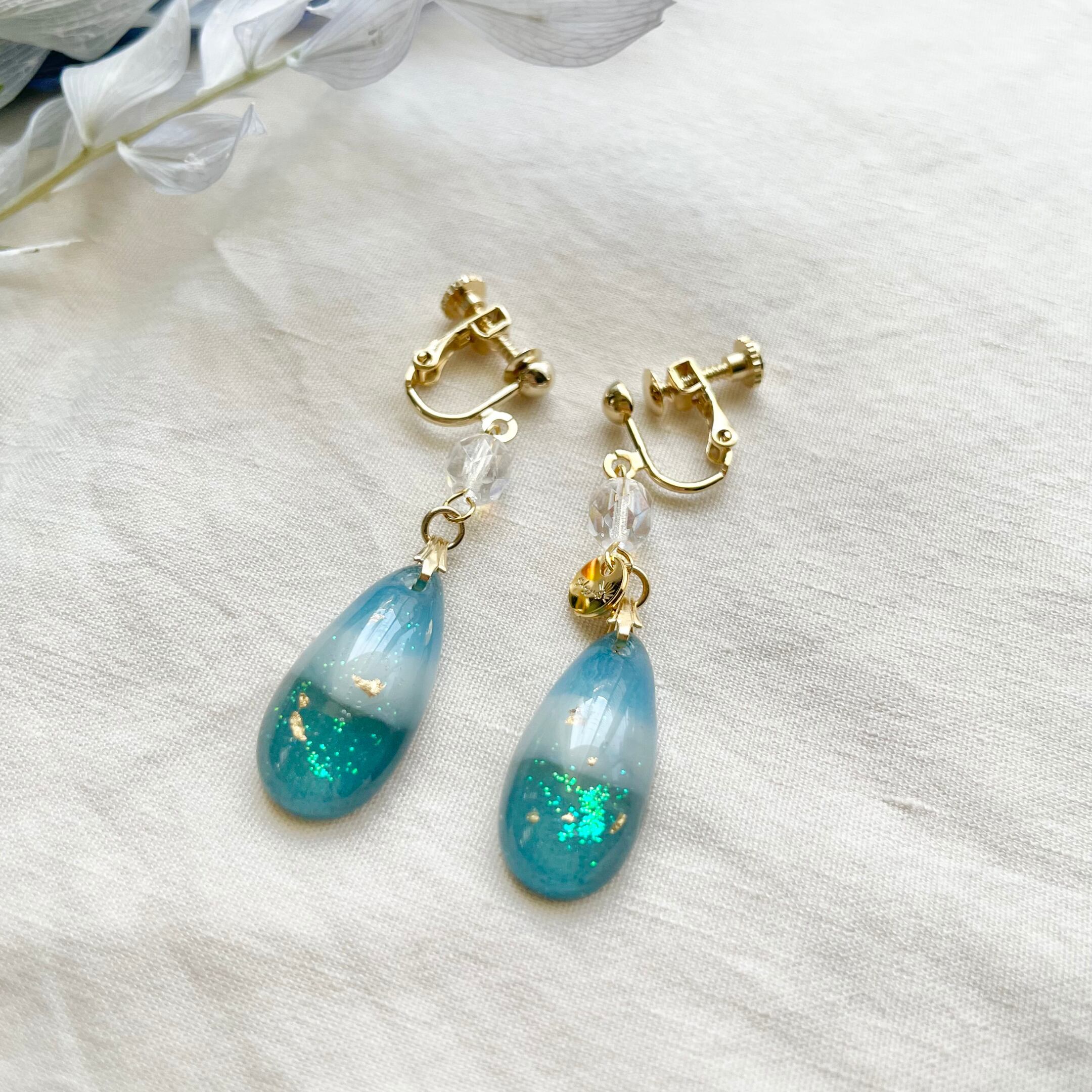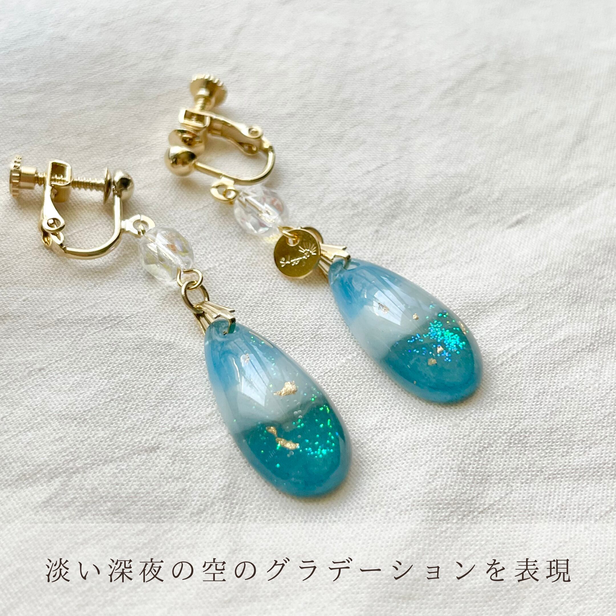 心がほっと安らぐ☆ グラデーションの星空イヤリング ~深夜~